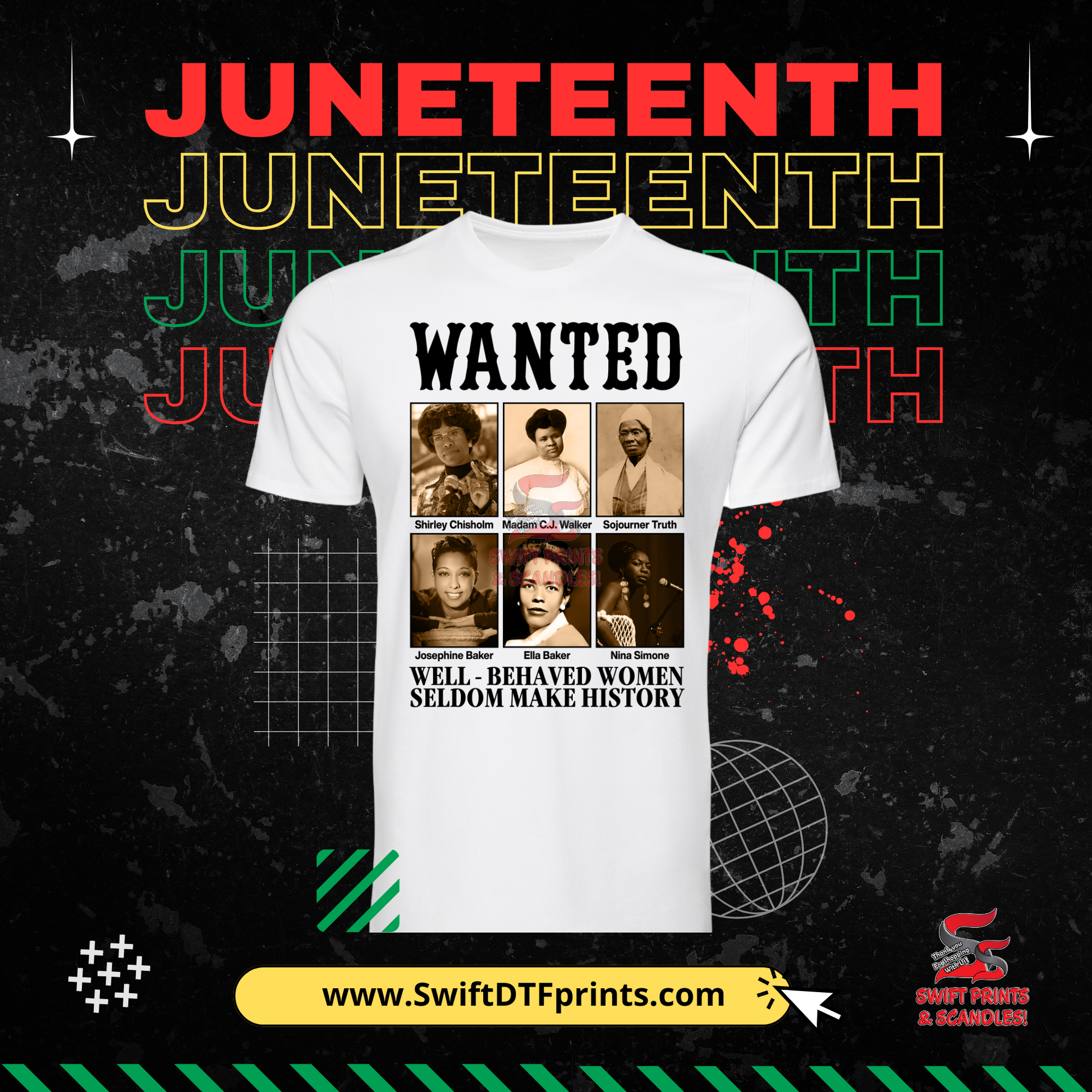 This Juneteenth, express pride, power, and purpose with our exclusive t-shirt collection celebrating Black excellence and the continued journey toward freedom. Each design features a bold statement and visual tribute to historical icons and movements that shaped generations.