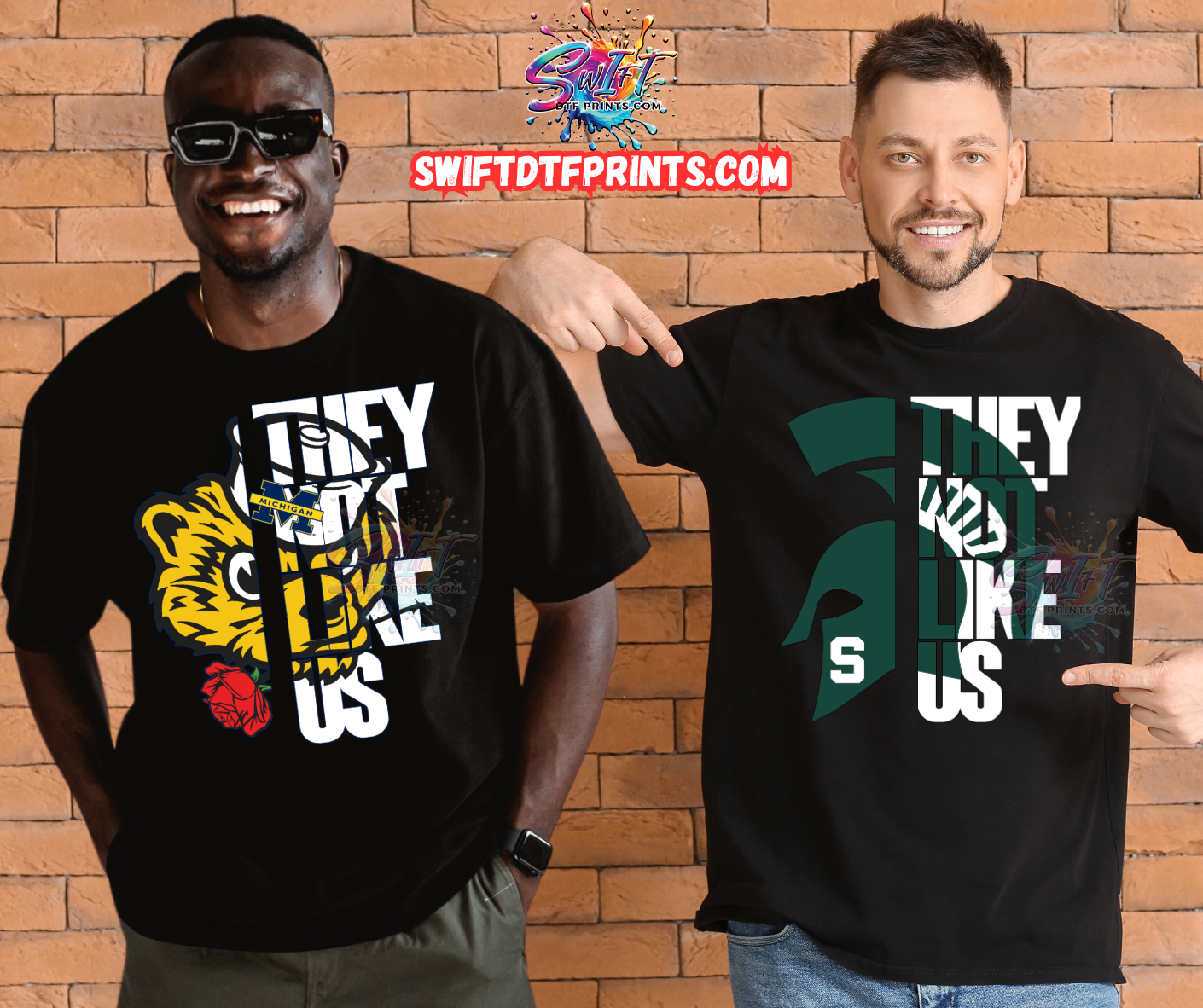 Show off your favorite College Team Pride with this perfect T-Shirt or Hoodie boasting University of Michigan OR Michigan State!